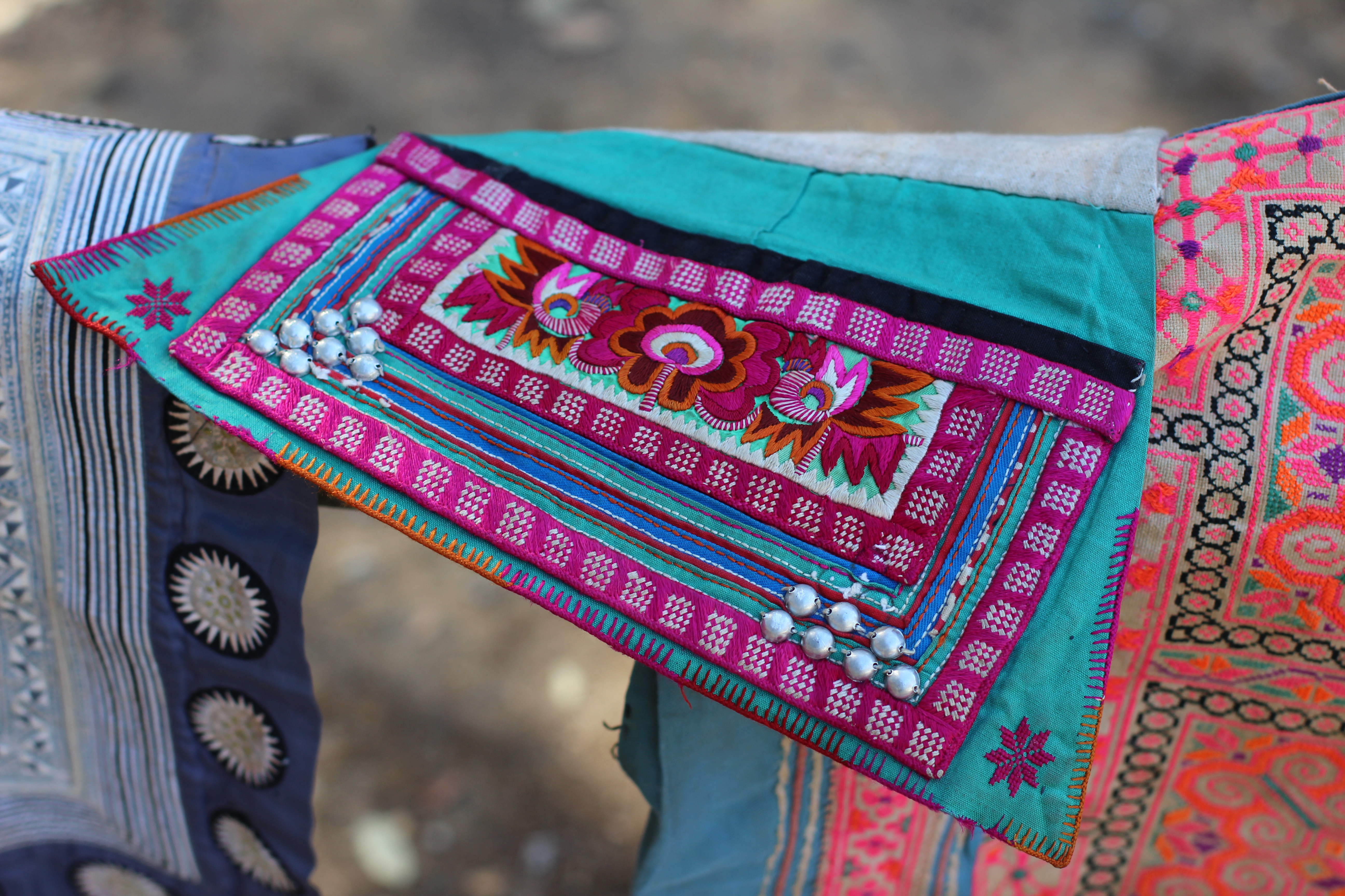 Since then I have fallen in love with Hmong hand stitched fabric and embroidery and have invested in several vintage pieces. Earlier this year I converted a Hmong baby carrier into the purse above and designed a bag around a vintage remnant shown below.