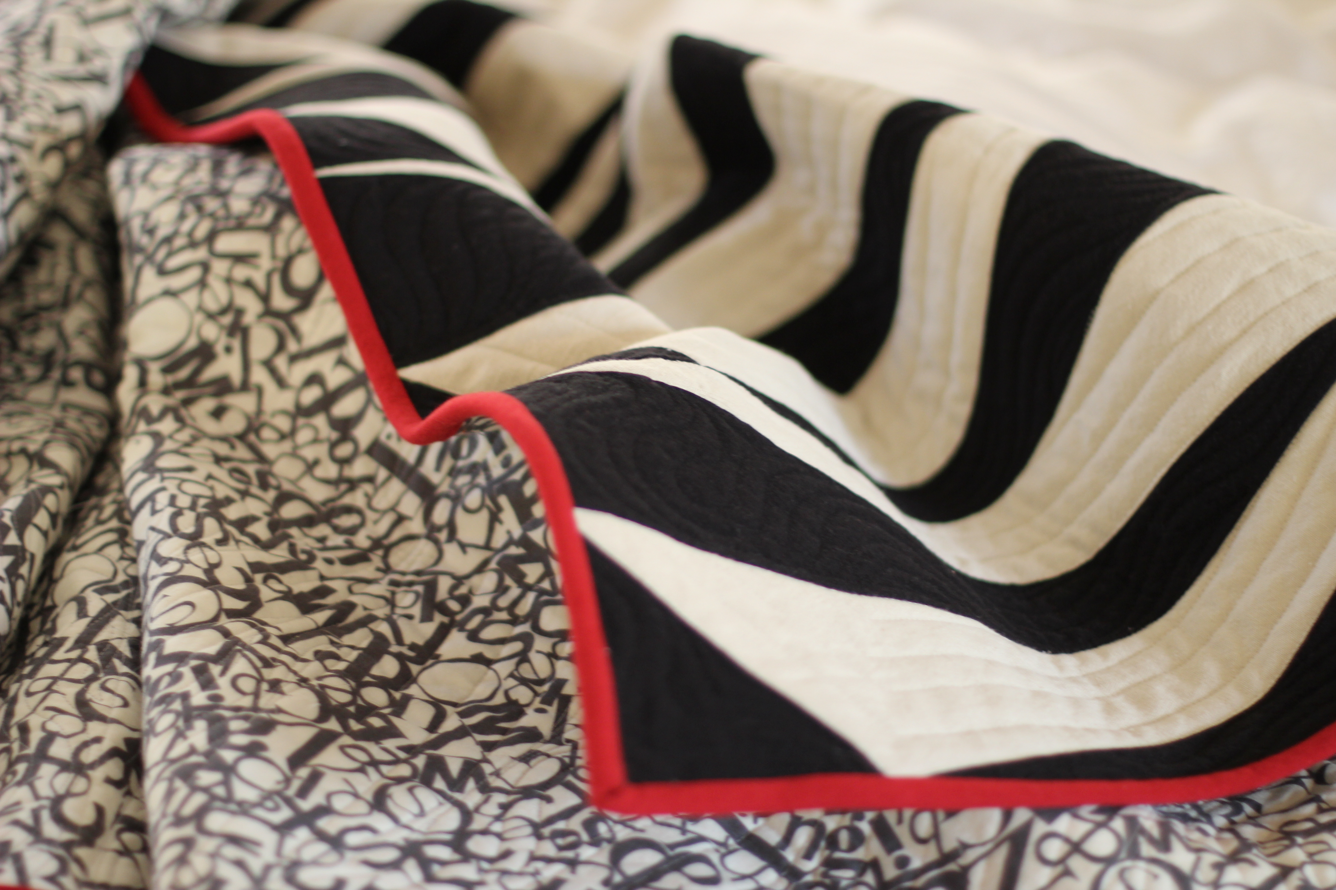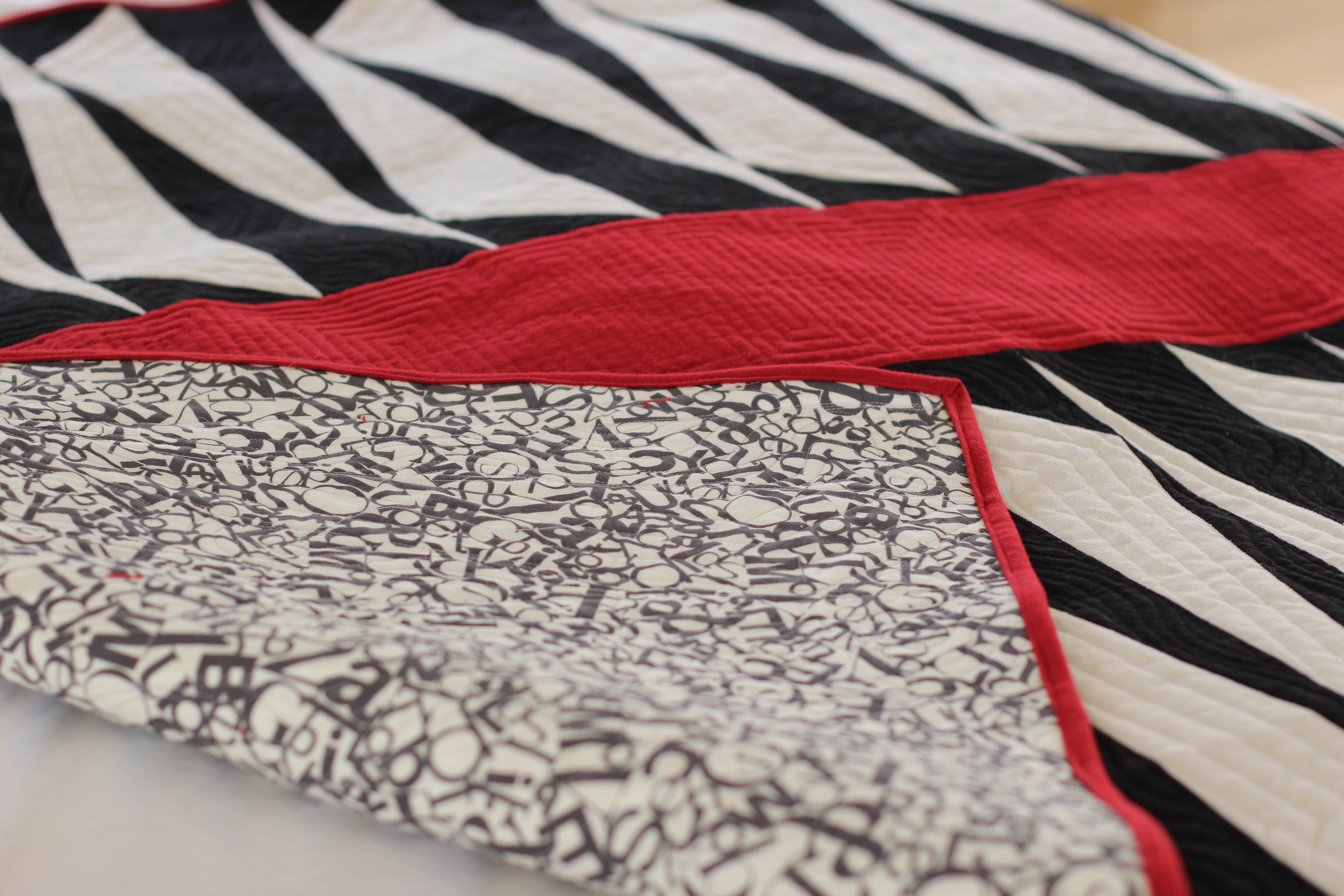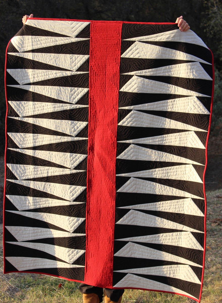 When I finished the top, I knew this special quilt deserved some custom quilting beyond my abilities.  I was fortunate to choose Emily Sessions to quilt it for me. (http://emersonquilting.com)  I let Emily have free reins with the design and am thrilled with the results. It is geometric, modern quilting at it’s best and adds tremendously to my piecing.