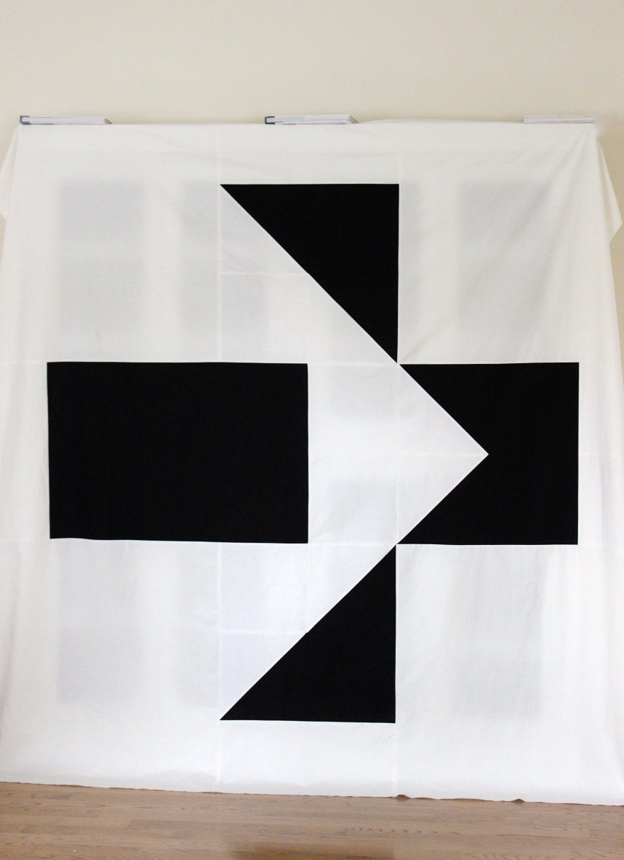 Working both the big and small sides of crafting today. With an image in my mind and 6 yrds of Kona Black and Snow colored fabric at my disposal, another new jumbo geometric quilt top is complete.