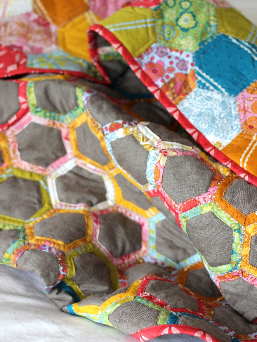 1. Ha! Yes, for a bit I considered calling it “I Now Hate Hexies” quilt because of the time commitment but I did all by machine and only needed to bind at the end so that was a good thing:). The awesome thing about this method is it could go so many ways. I’m now itching to do something big and modern. 🙂