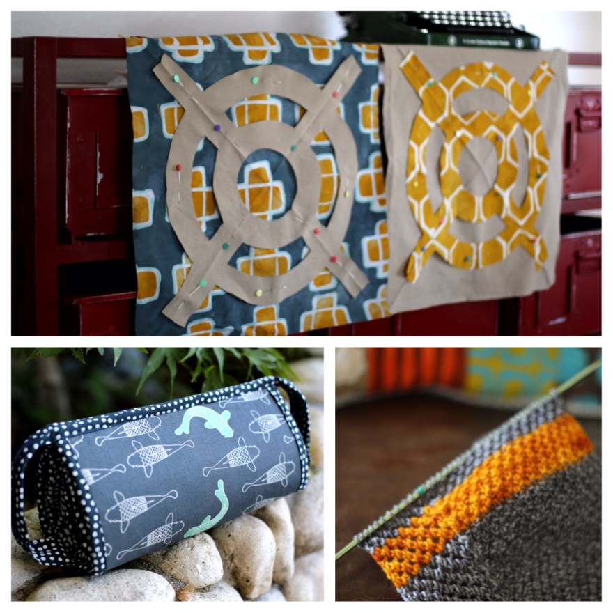 2. So many great projects here! Love the moth applique in leather. The color combinations are great. The double cowl is so fun with the pop of color. I am excited to see the pillow and quilt come together.