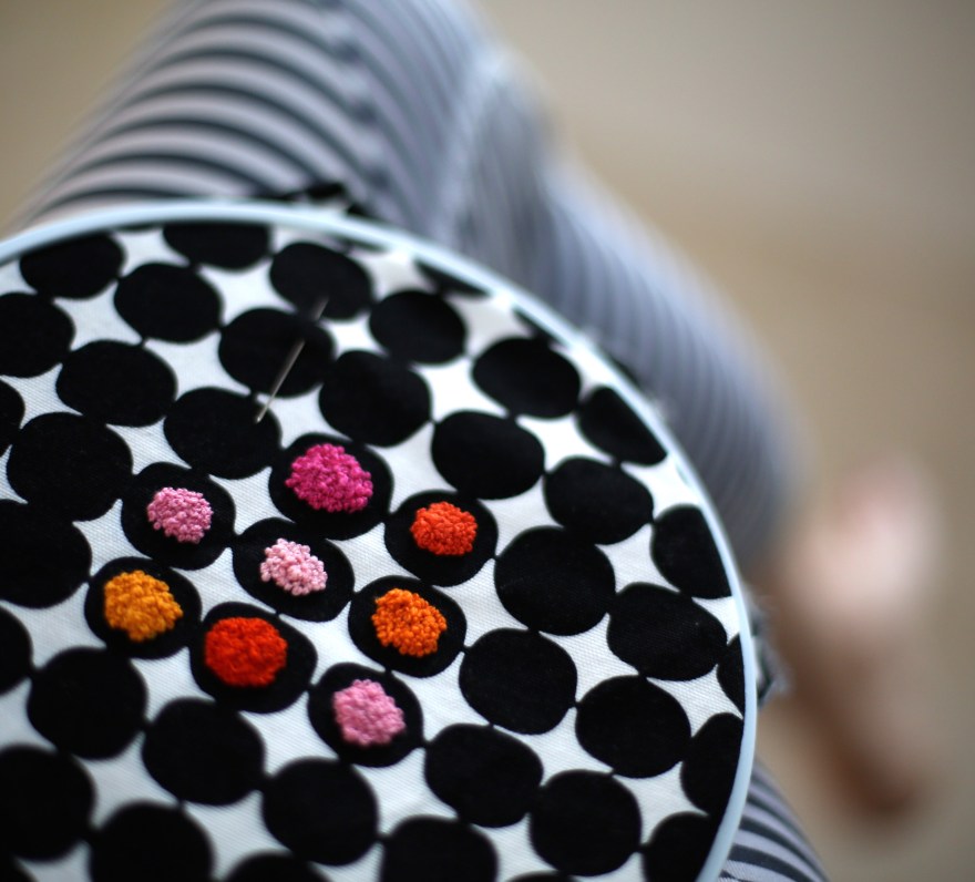 To end, I had a nice surprise again yesterday when my crazy yoga pants/french knot project picture was picked as a weekly fave in Craft Magazine Online.  Who knew a quick project shot while I was waiting for the kids to dress for school would be so popular?  A good reminder to me of the beauty of the mundane, little moments of my life.