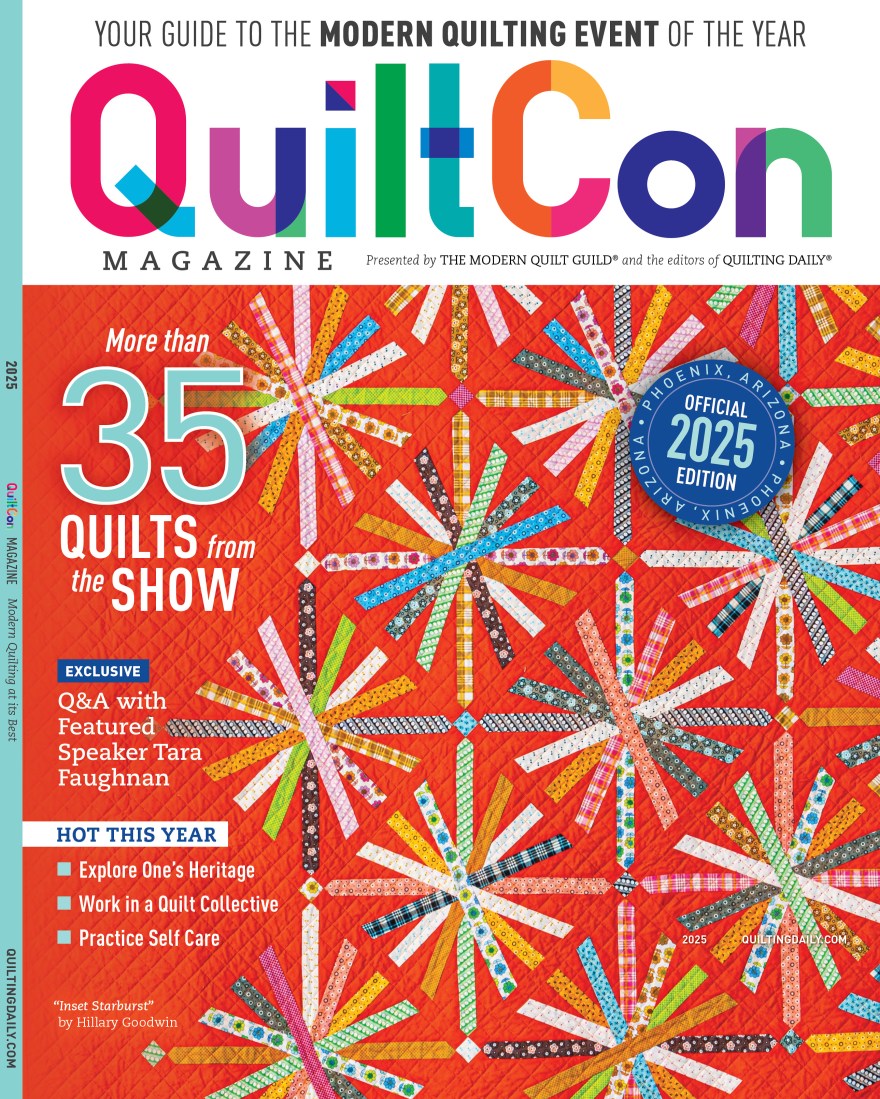 My quilt “Inset Starburst” is on the cover of Quiltcon 2025 Magazine and the pattern using my inset strip technique is included inside. I’m excited for others to get a chance to play with this technique in block form. You can find your own paper copy available in stores at at Quiltcon starting Feb 18, 2025 and the digital copy available now here: https://www.quiltingdaily.com/product/quiltcon-magazine-2025-digital-edition/