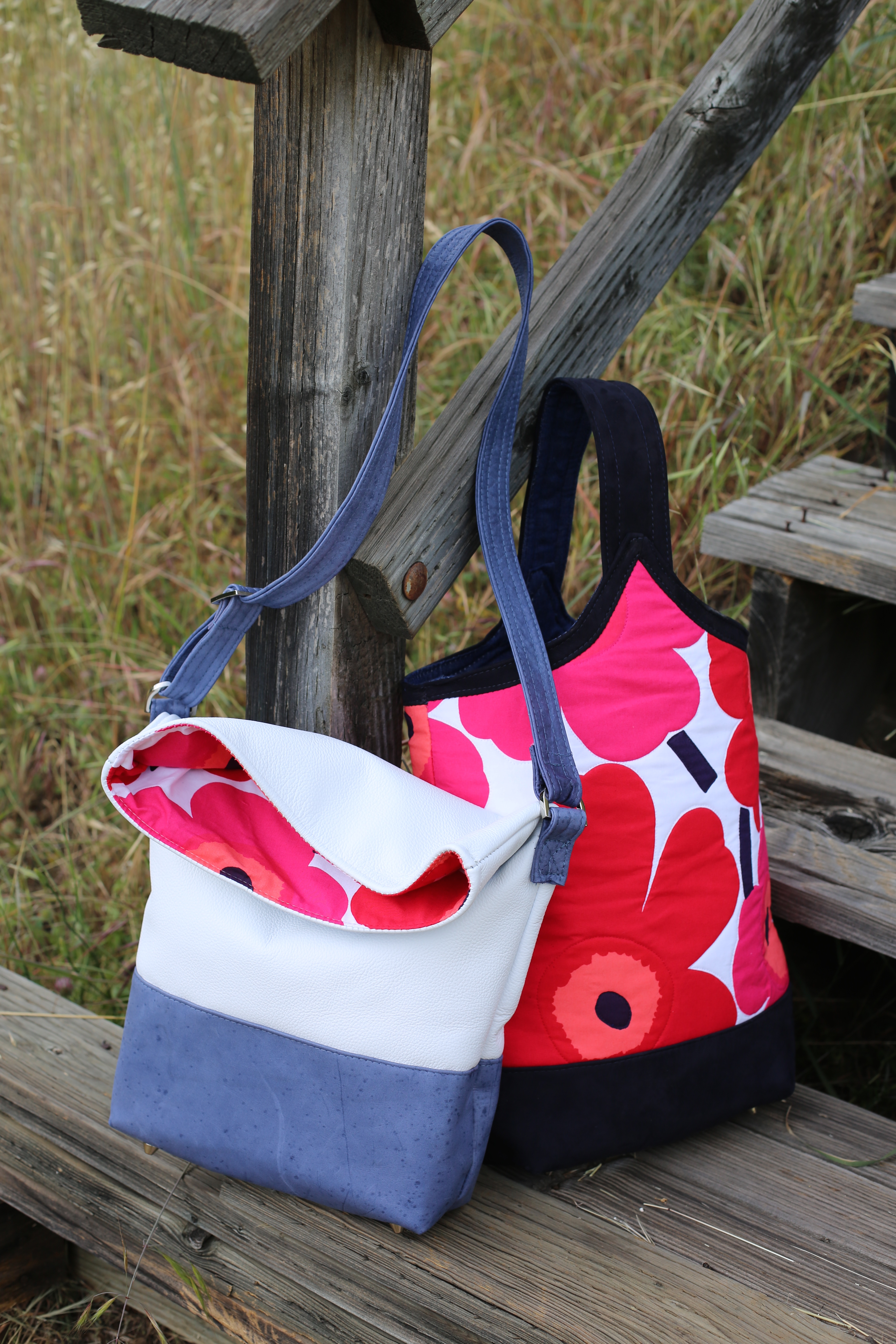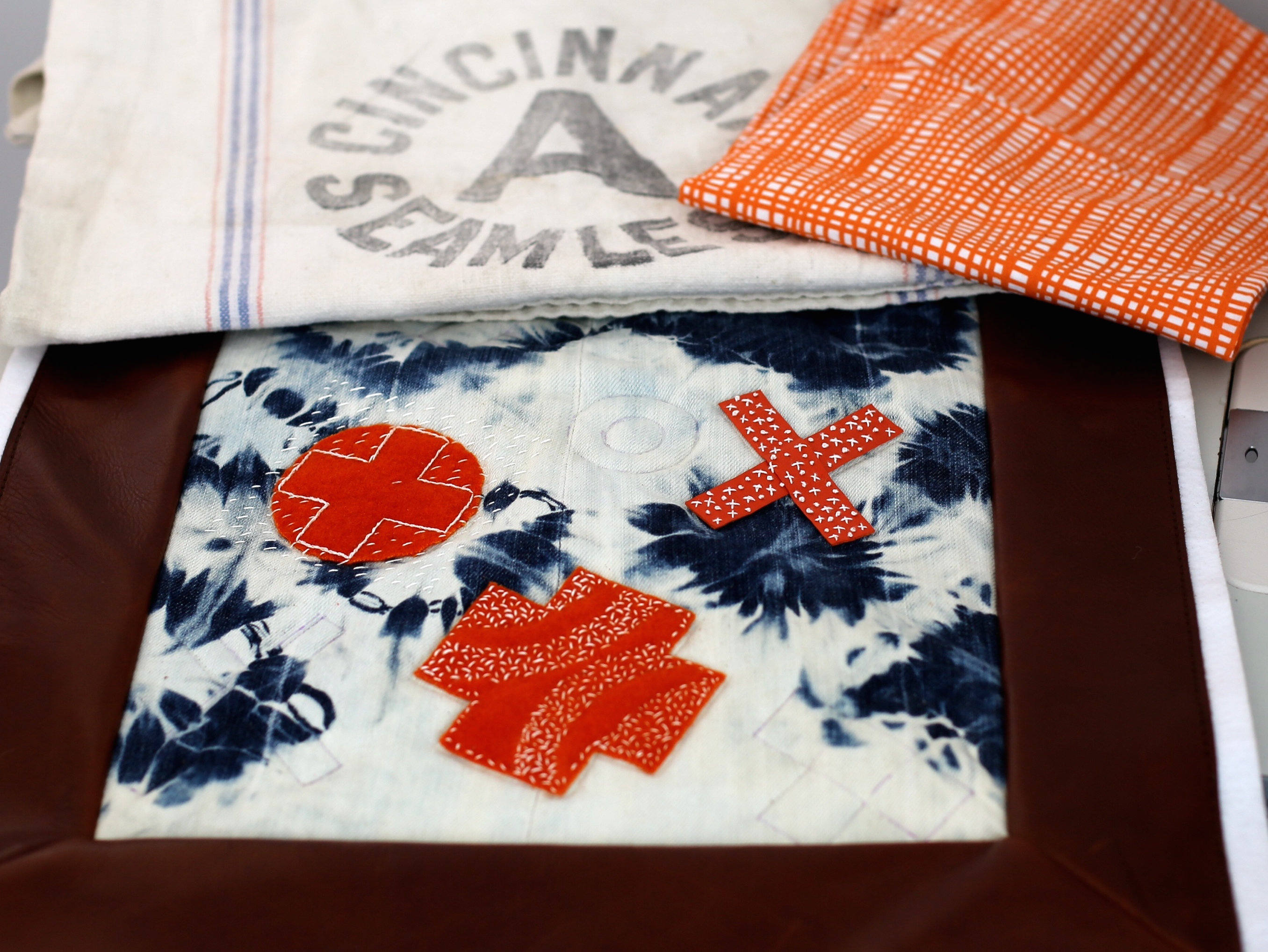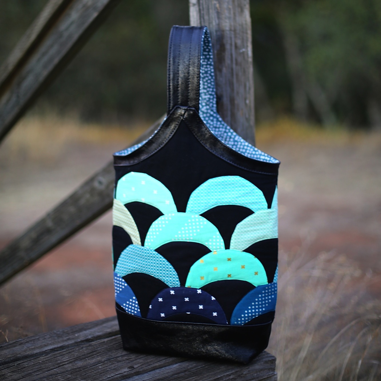 I love simple designs made with top notch materials. I also love combining nontraditional materials together. In this case I share a very simple tote design using thick felted wool along with leather handles and quilting cotton scraps. There are so many other ways to experiment with this bag design and I hope those who try it take my instructions as a jumping off point to explore their own creativity.