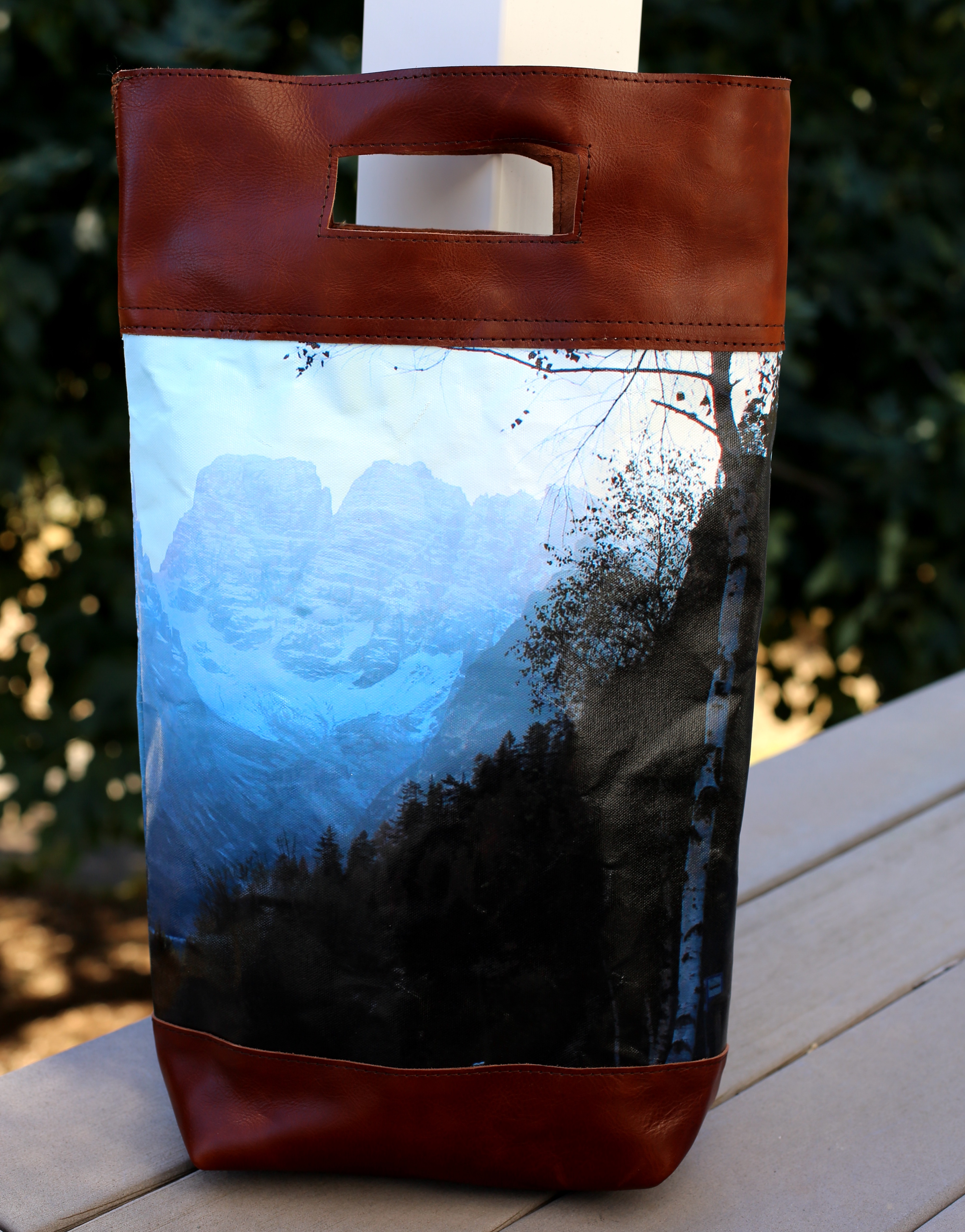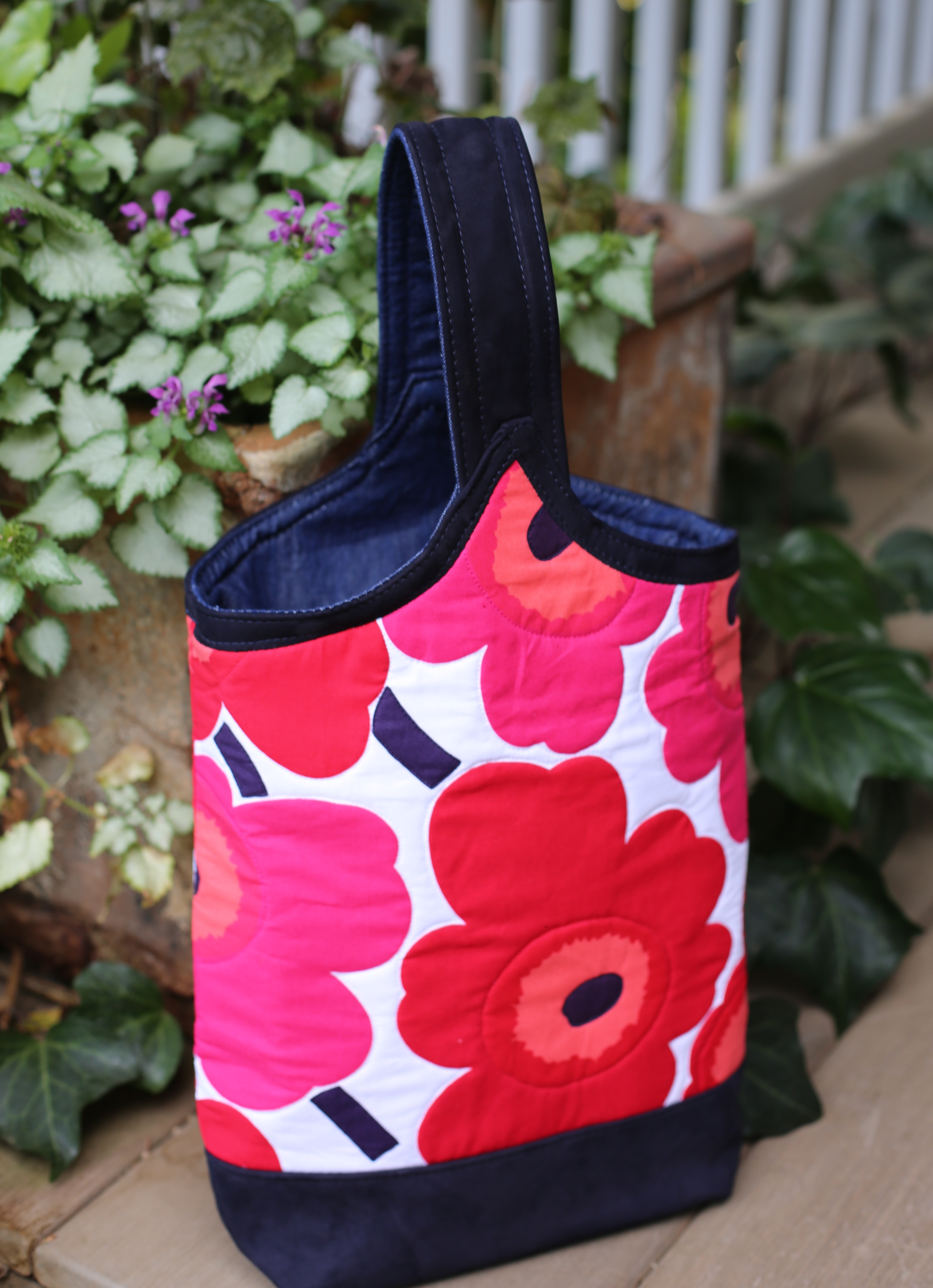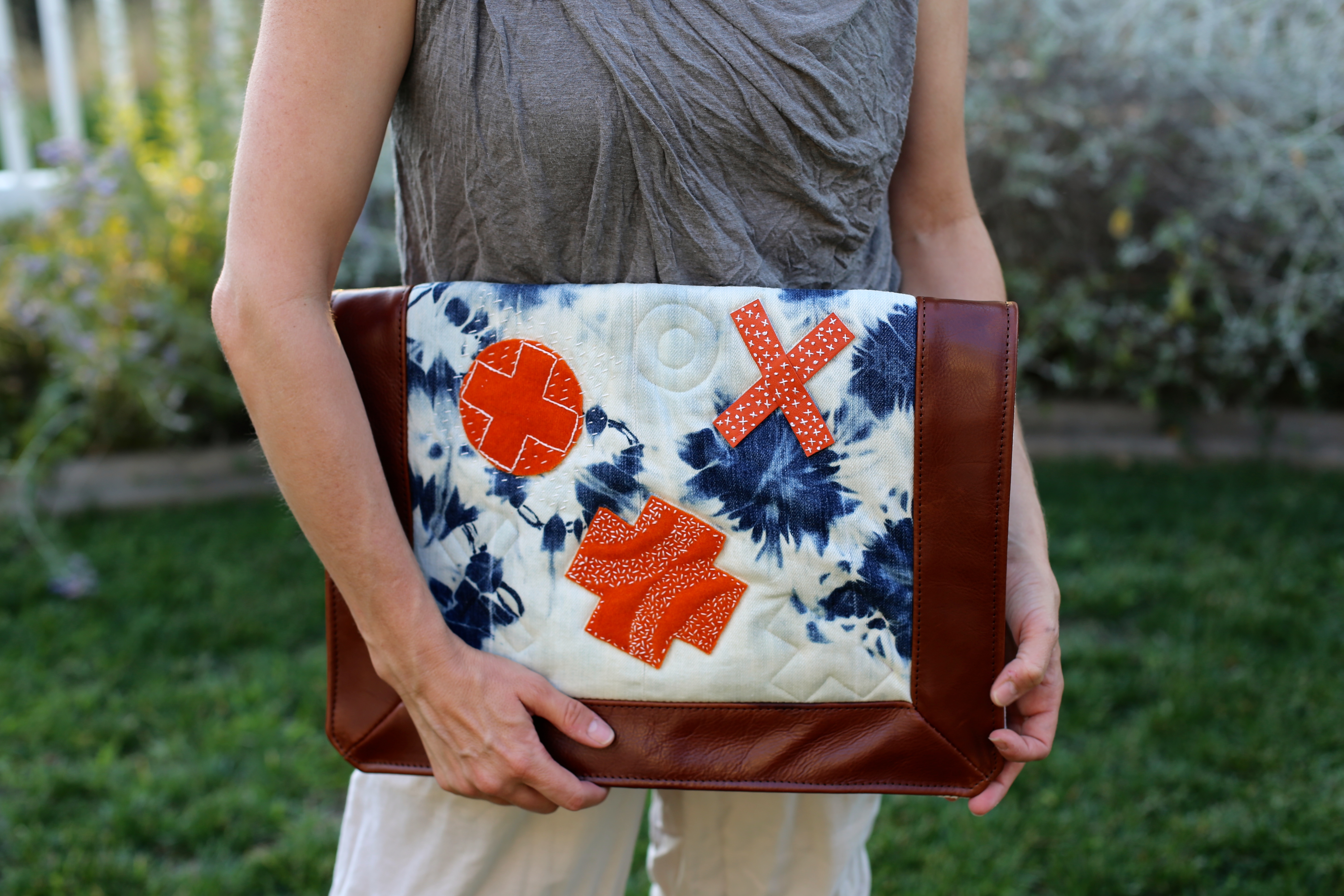 I love simple designs made with top notch materials. I also love combining nontraditional materials together. In this case I share a very simple tote design using thick felted wool along with leather handles and quilting cotton scraps. There are so many other ways to experiment with this bag design and I hope those who try it take my instructions as a jumping off point to explore their own creativity.