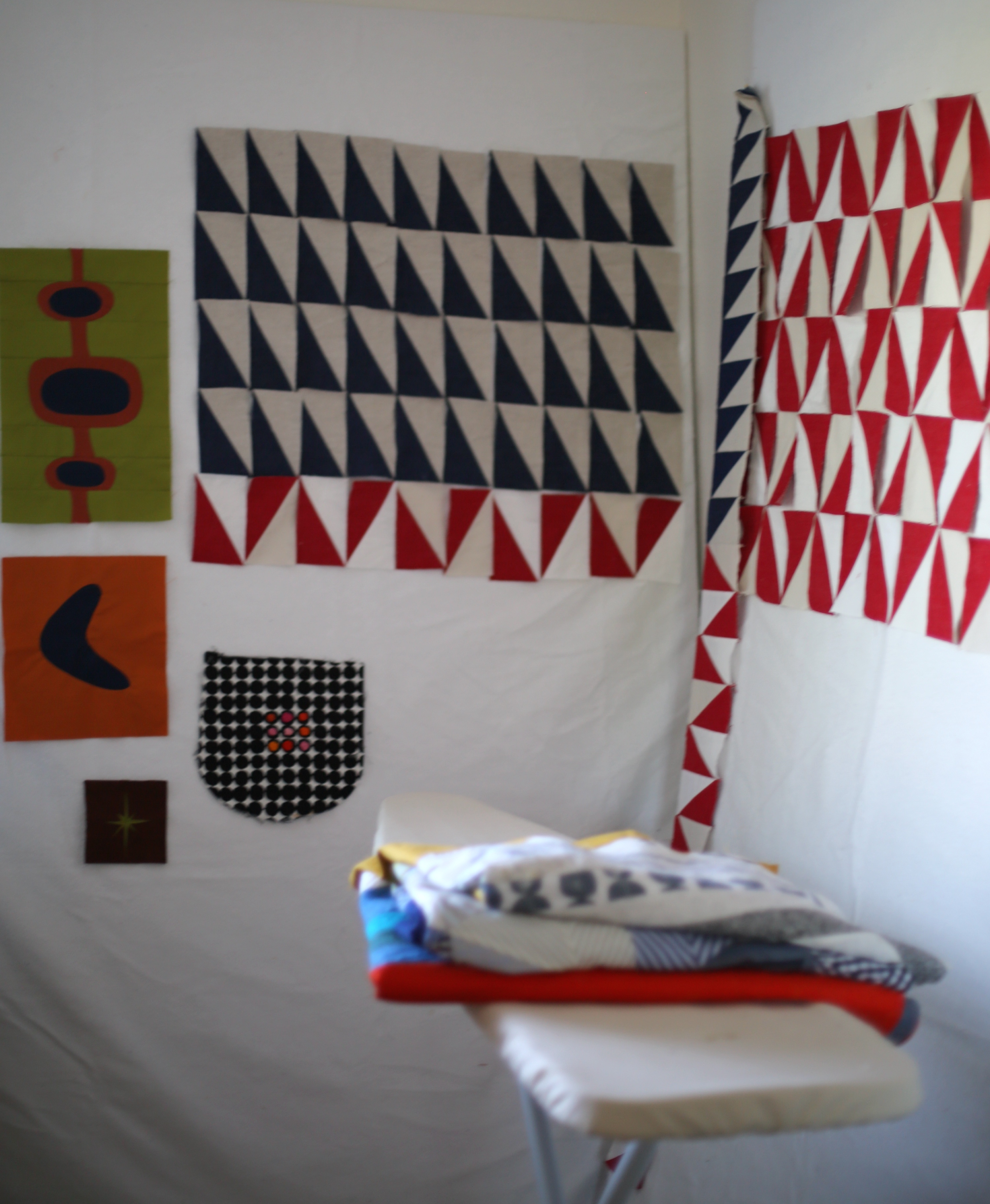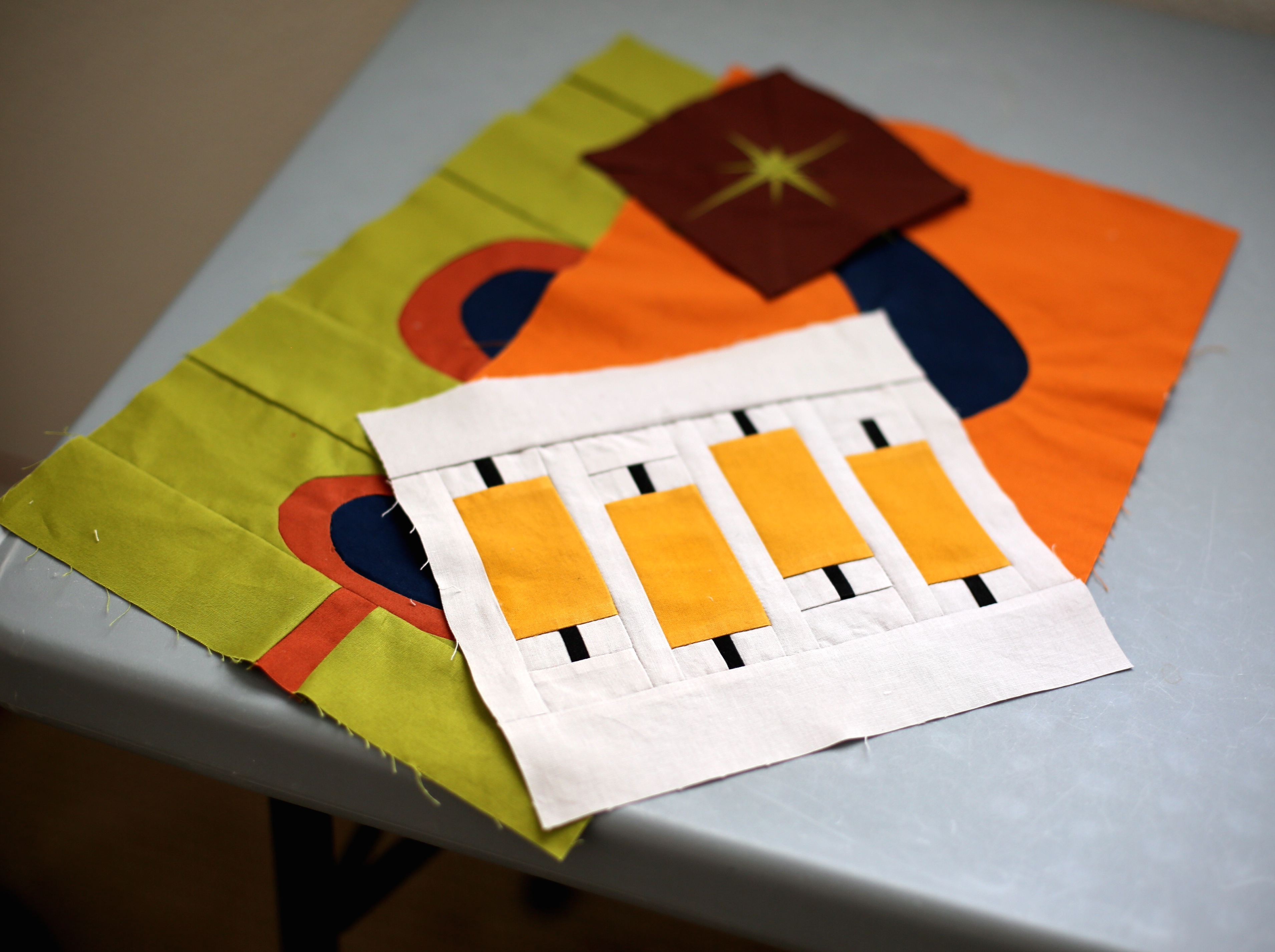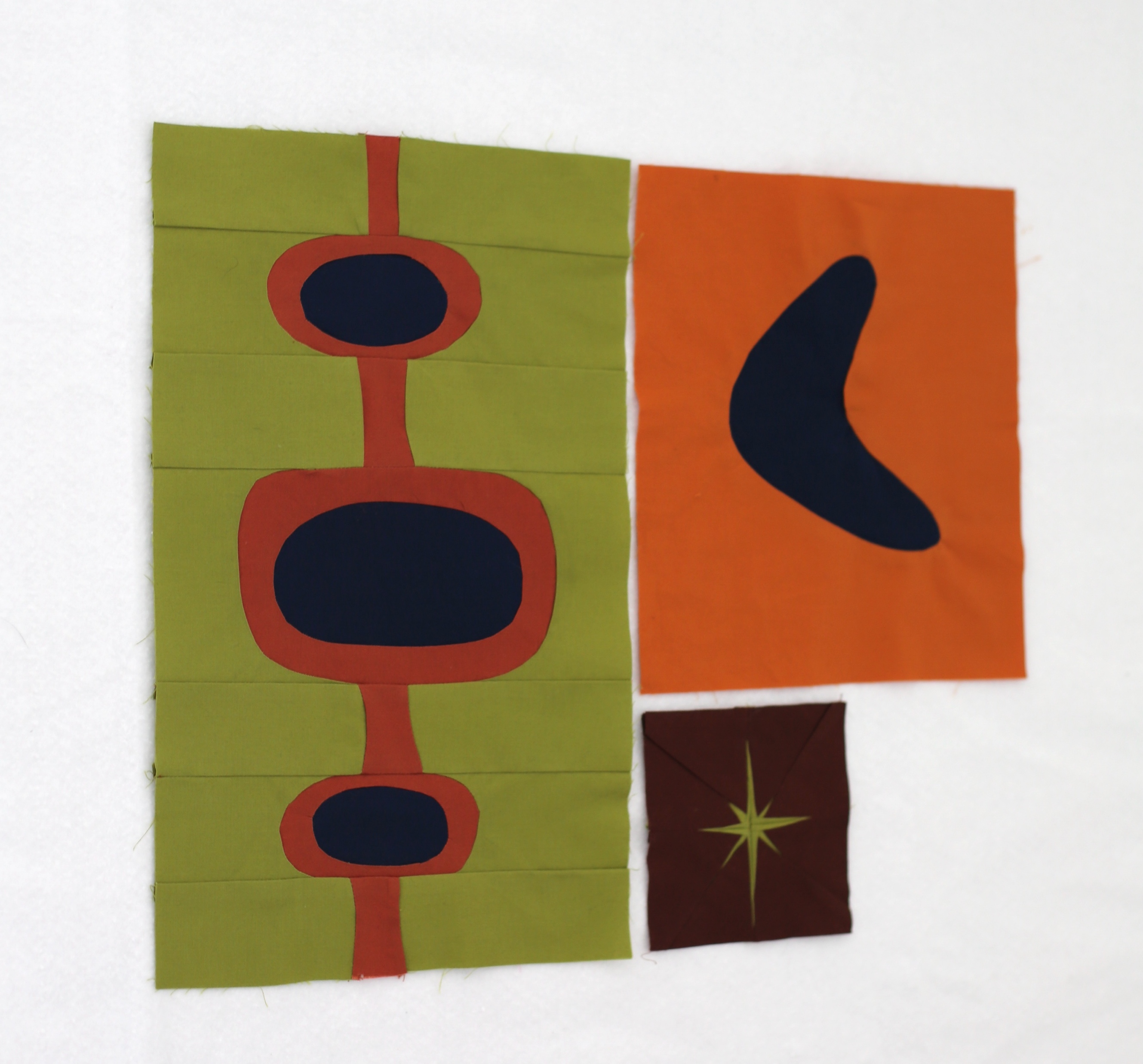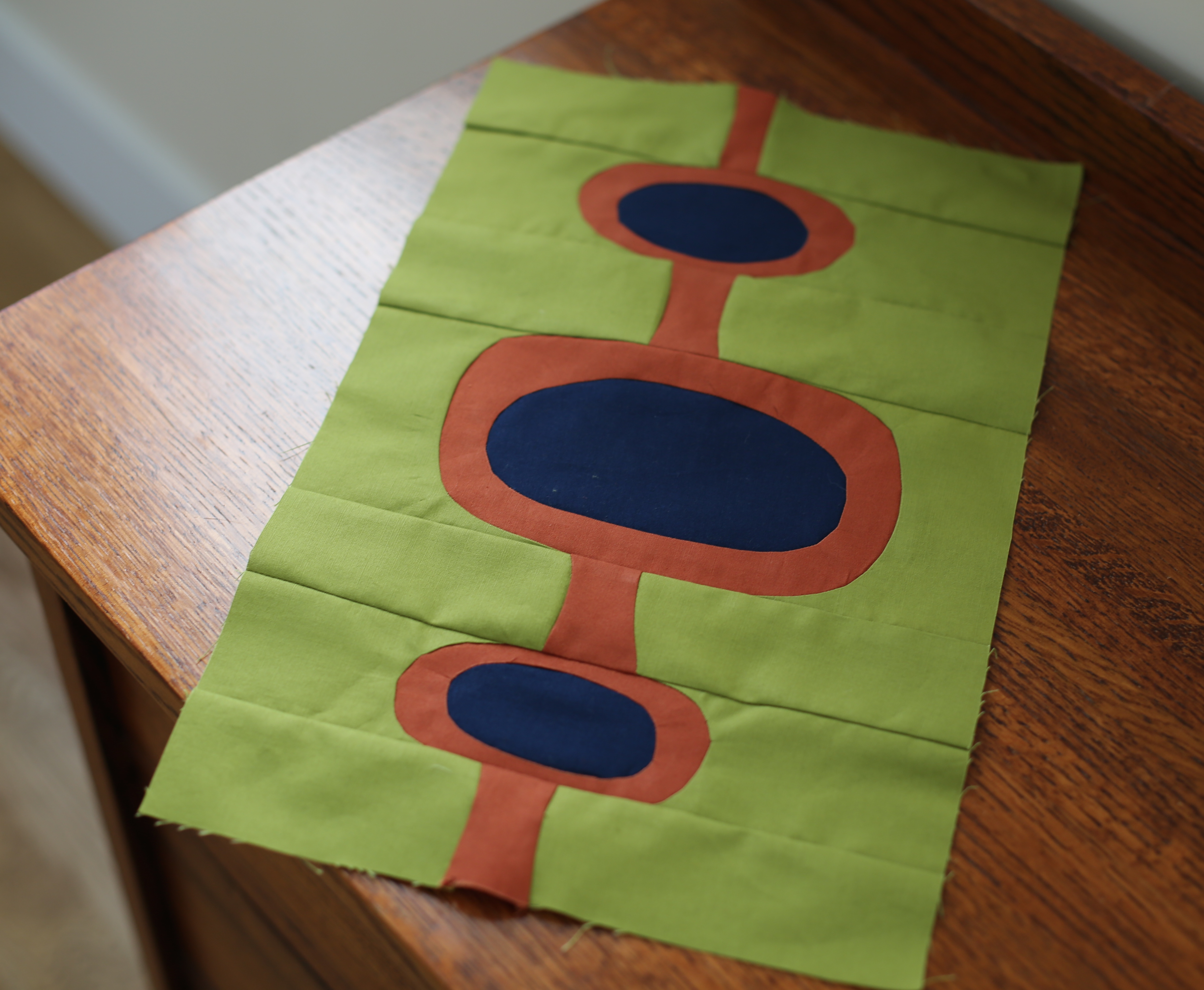 Once your motif is cut out in the felt, sandwich your block or textile between the front felt and the back extra felt piece centering them all as best you can. You may use reversible tape to secure everything in place if needed.