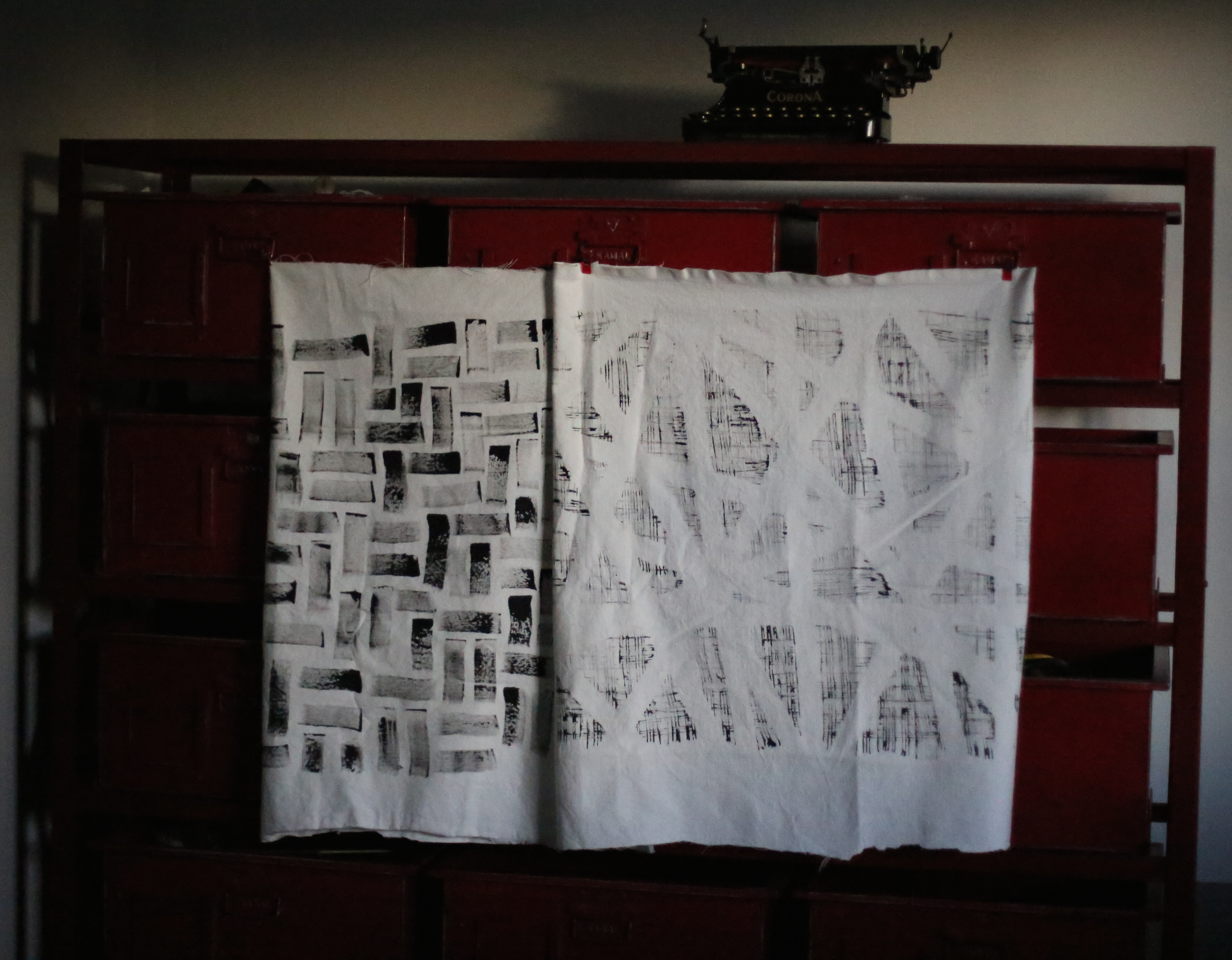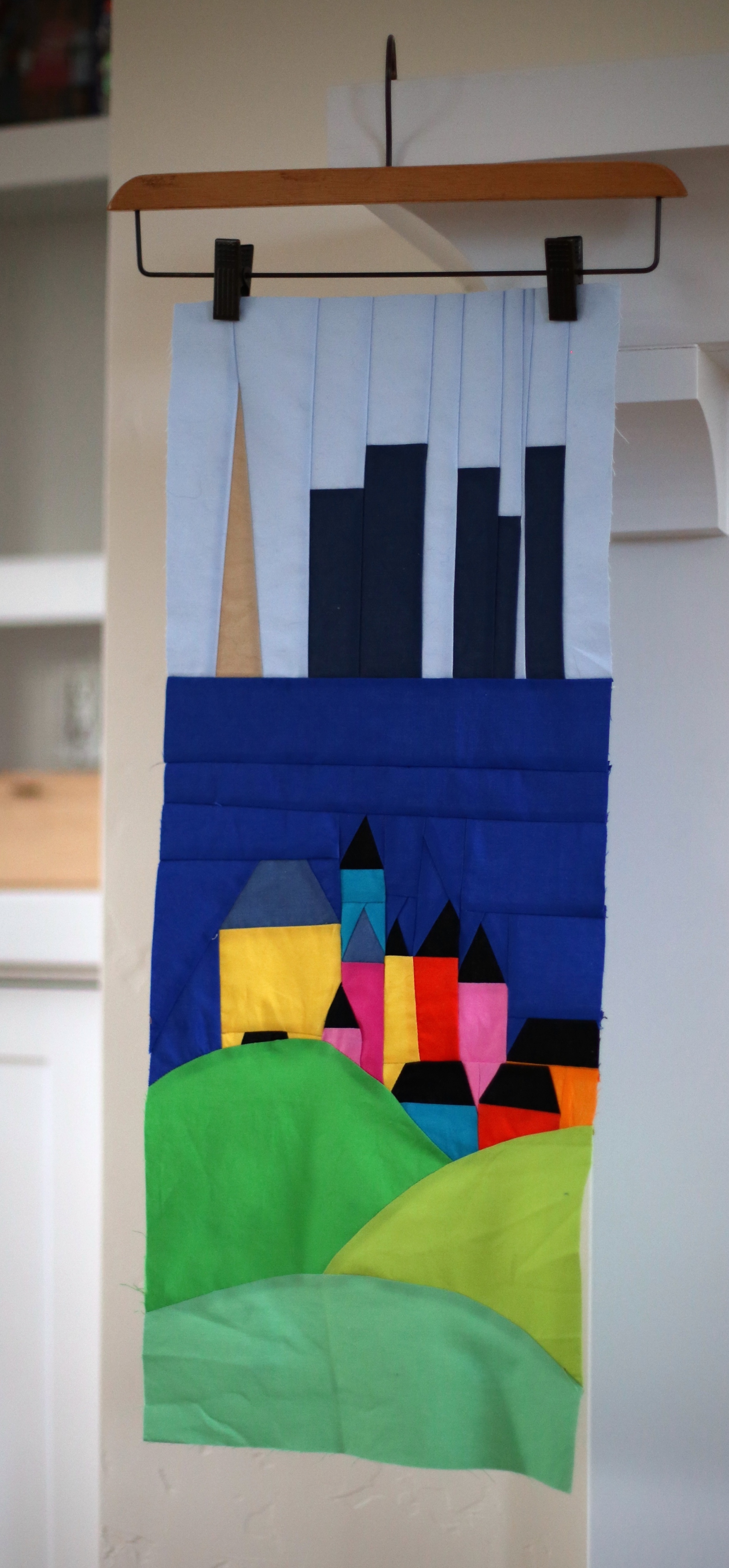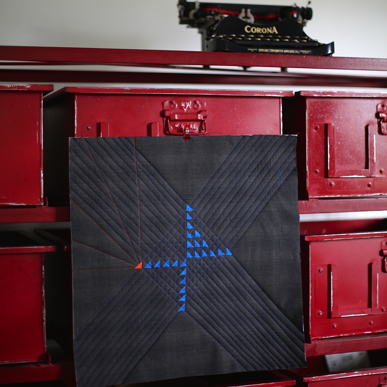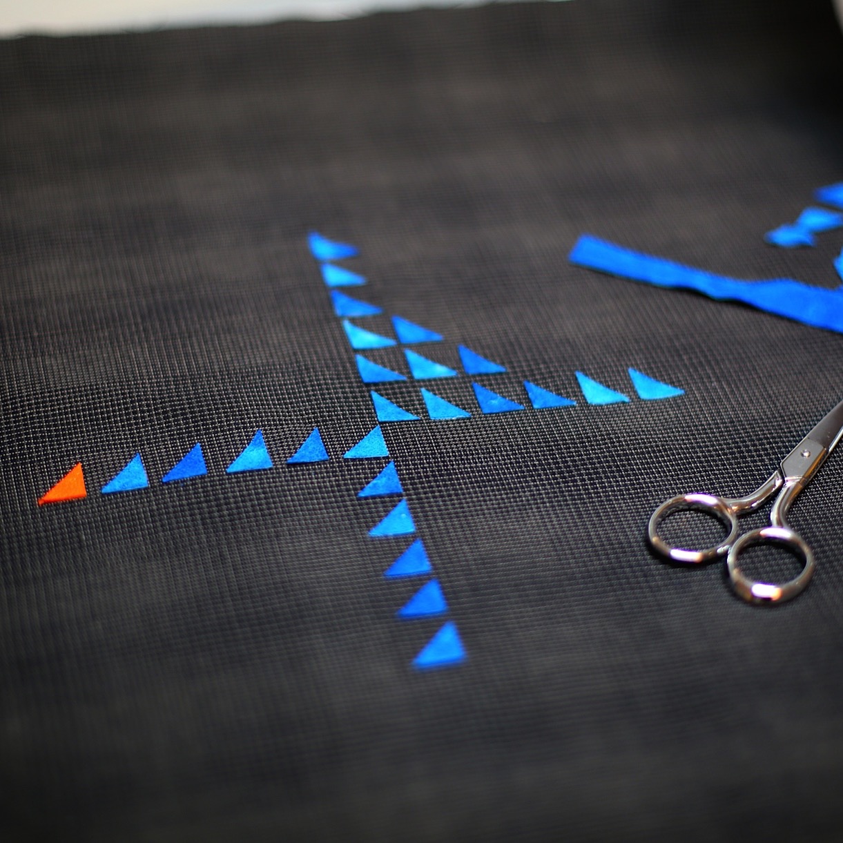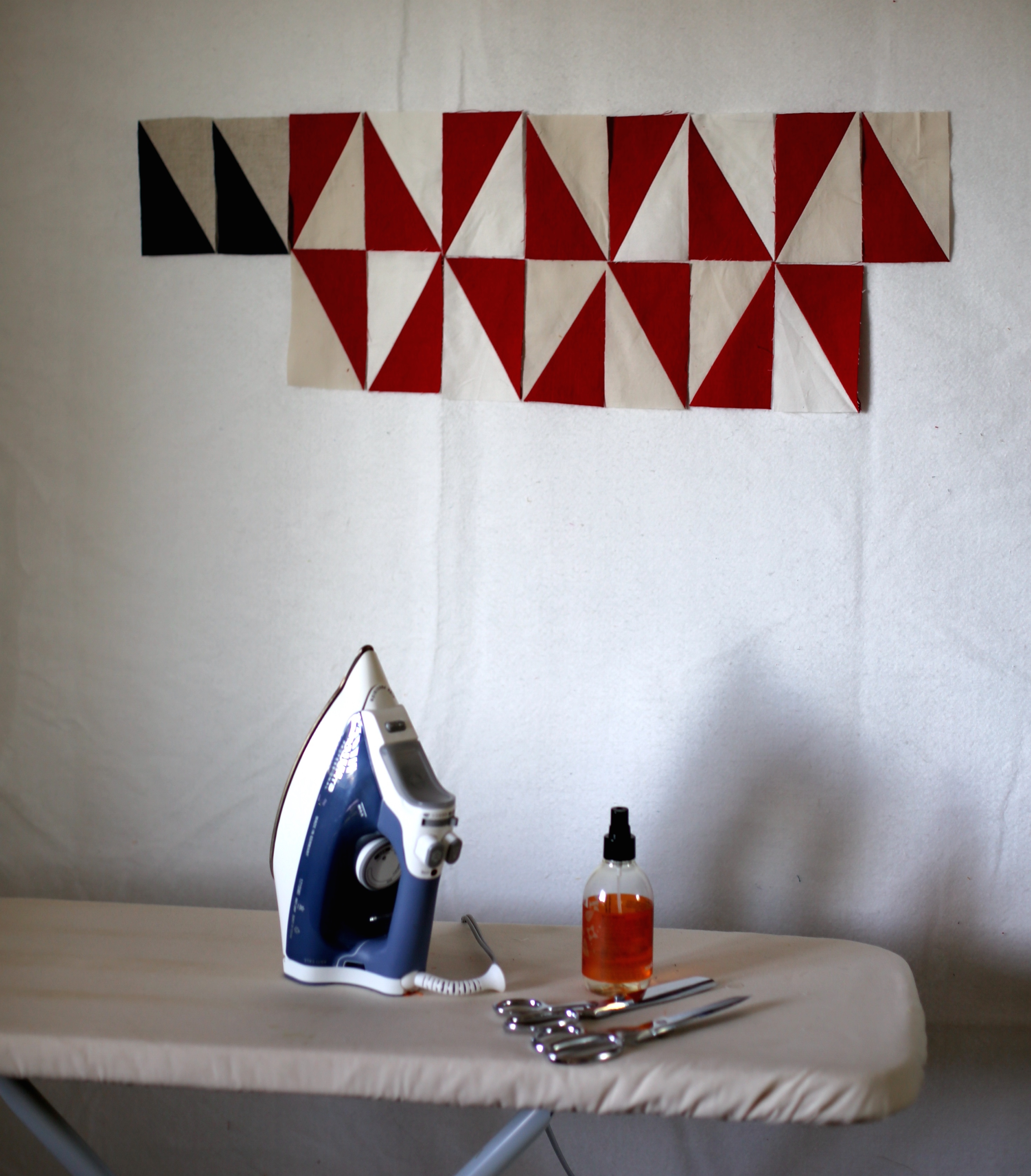Once your motif is cut out in the felt, sandwich your block or textile between the front felt and the back extra felt piece centering them all as best you can. You may use reversible tape to secure everything in place if needed.