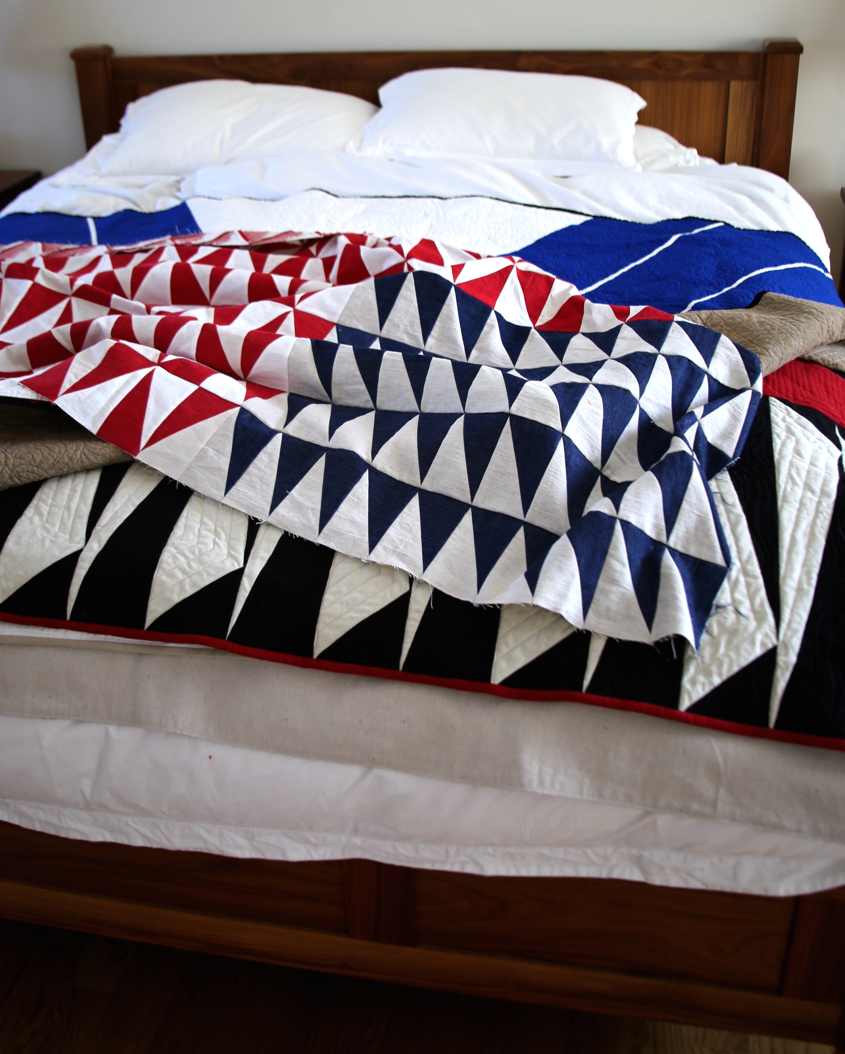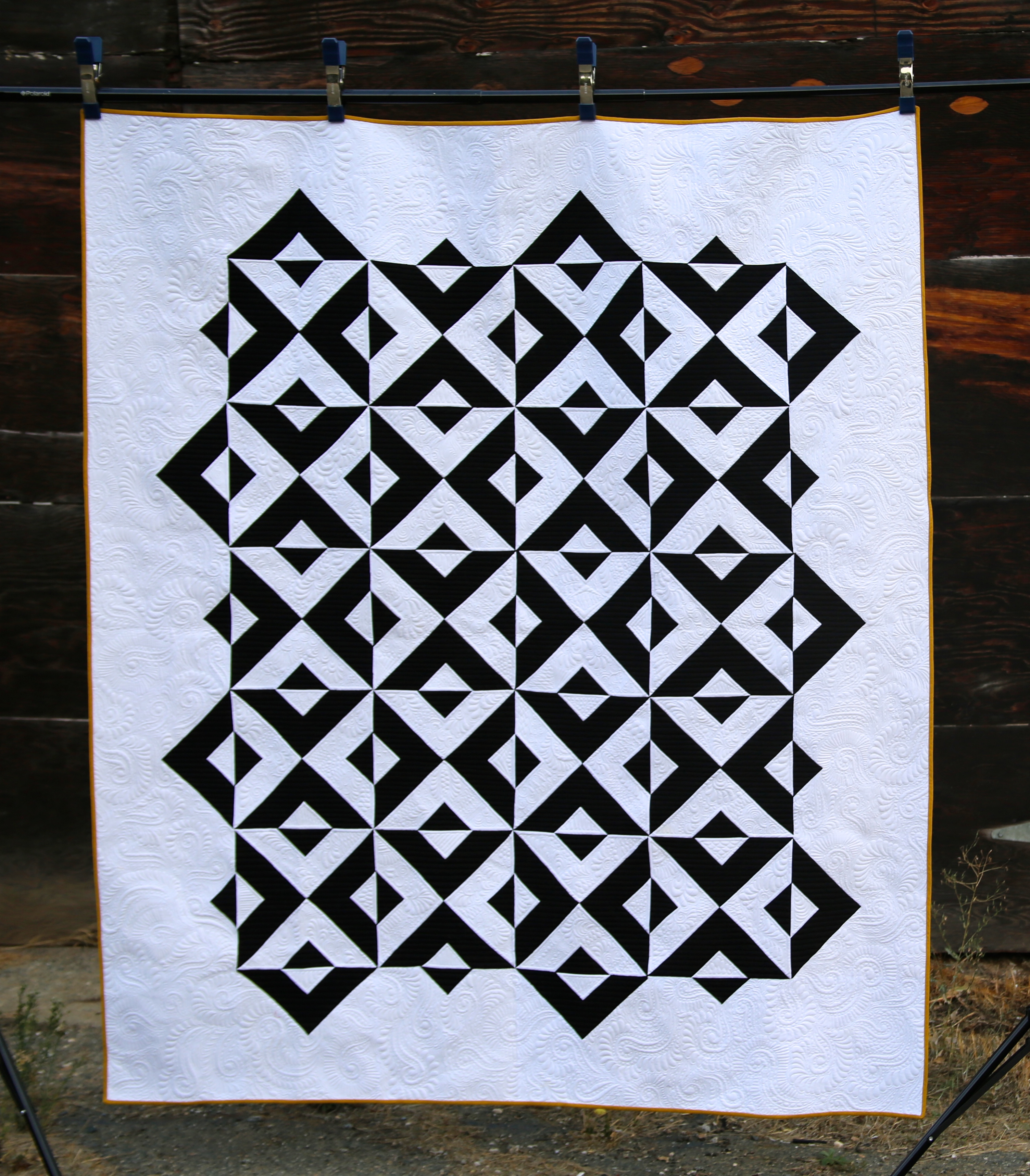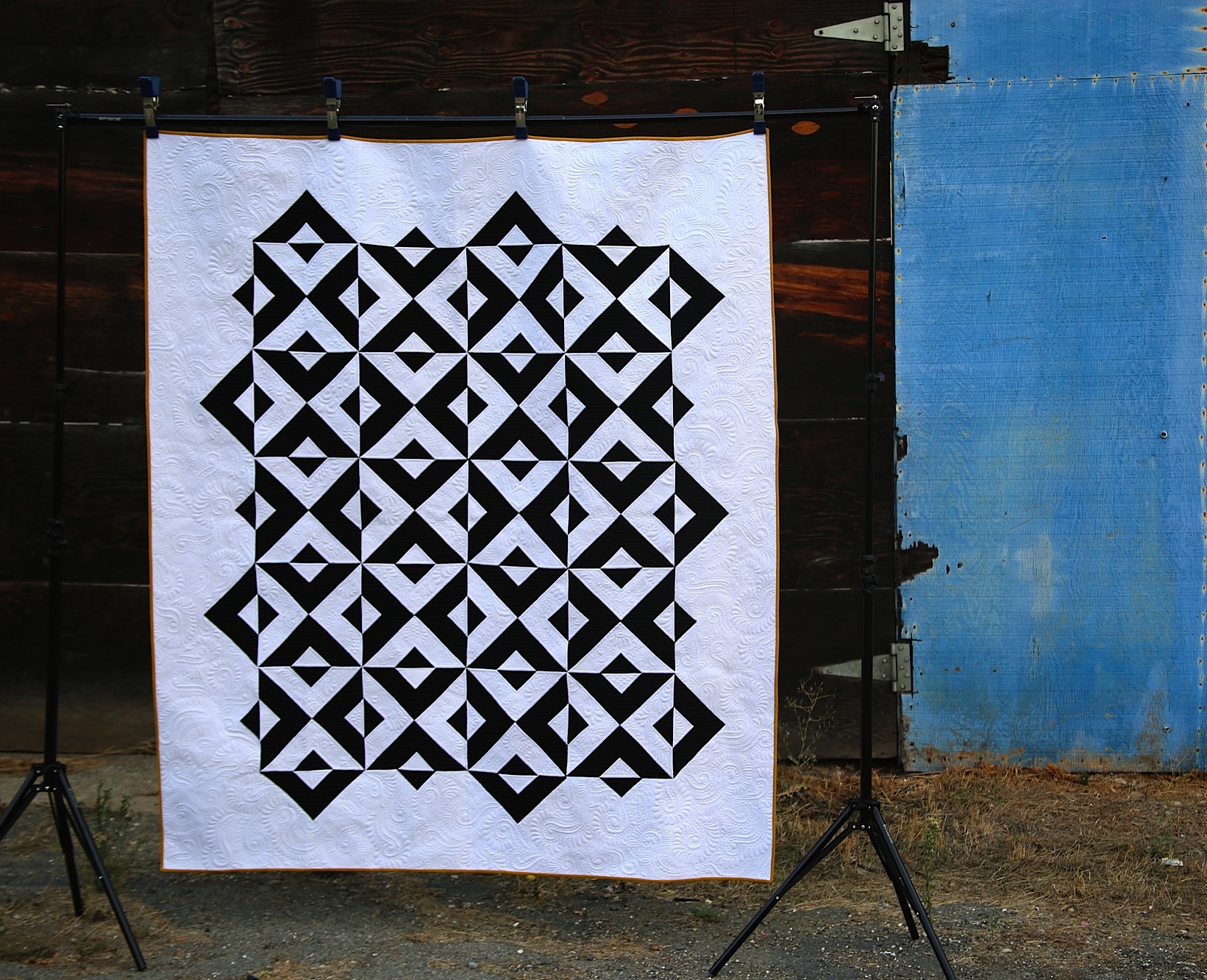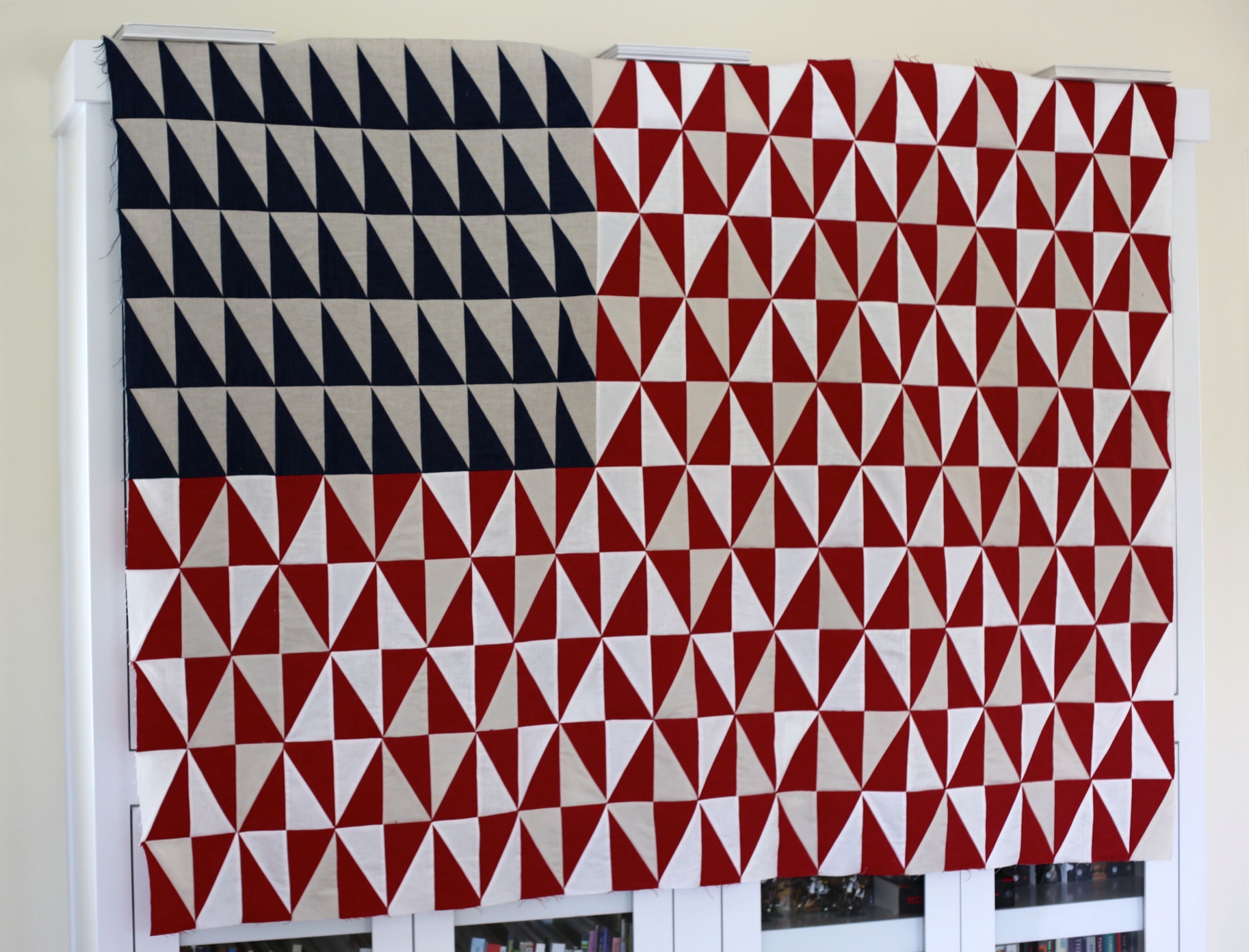 Further secure them all together by stitching 1/4 inch again around the block through all three layers.