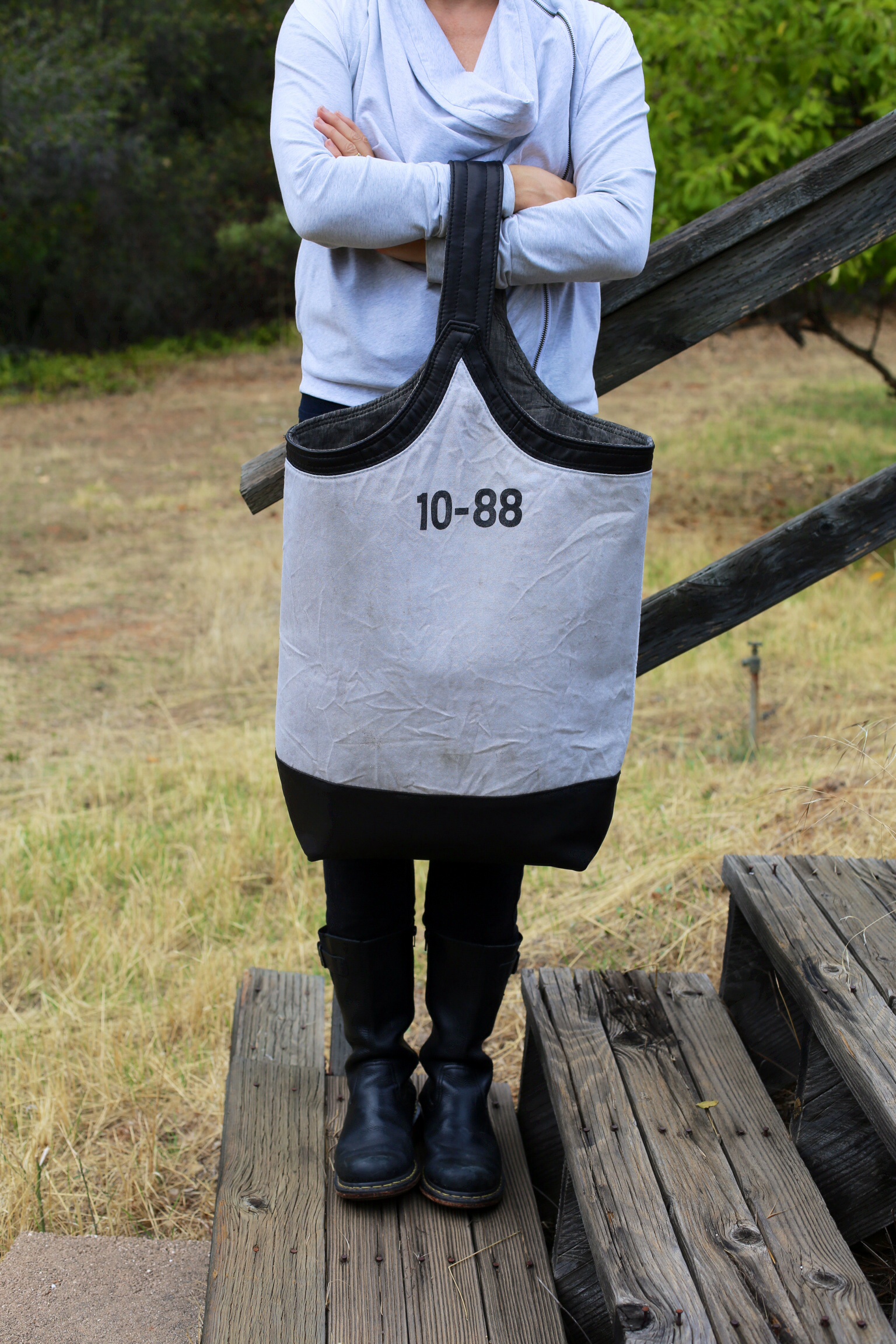 1 yard cotton (for the bag lining and the inside handles) cut into two rectangles (20″x18″) and two rectangles (20″x2″)