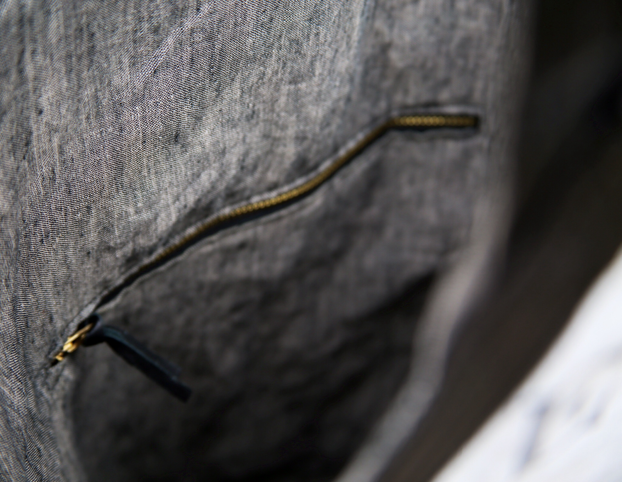 Pull the main bag through the opening in the bottom of the bag lining and push the lining into place. Top stitch along the bag at top. Finally sew by hand or machine the bottom opening in the lining together and you are done!
