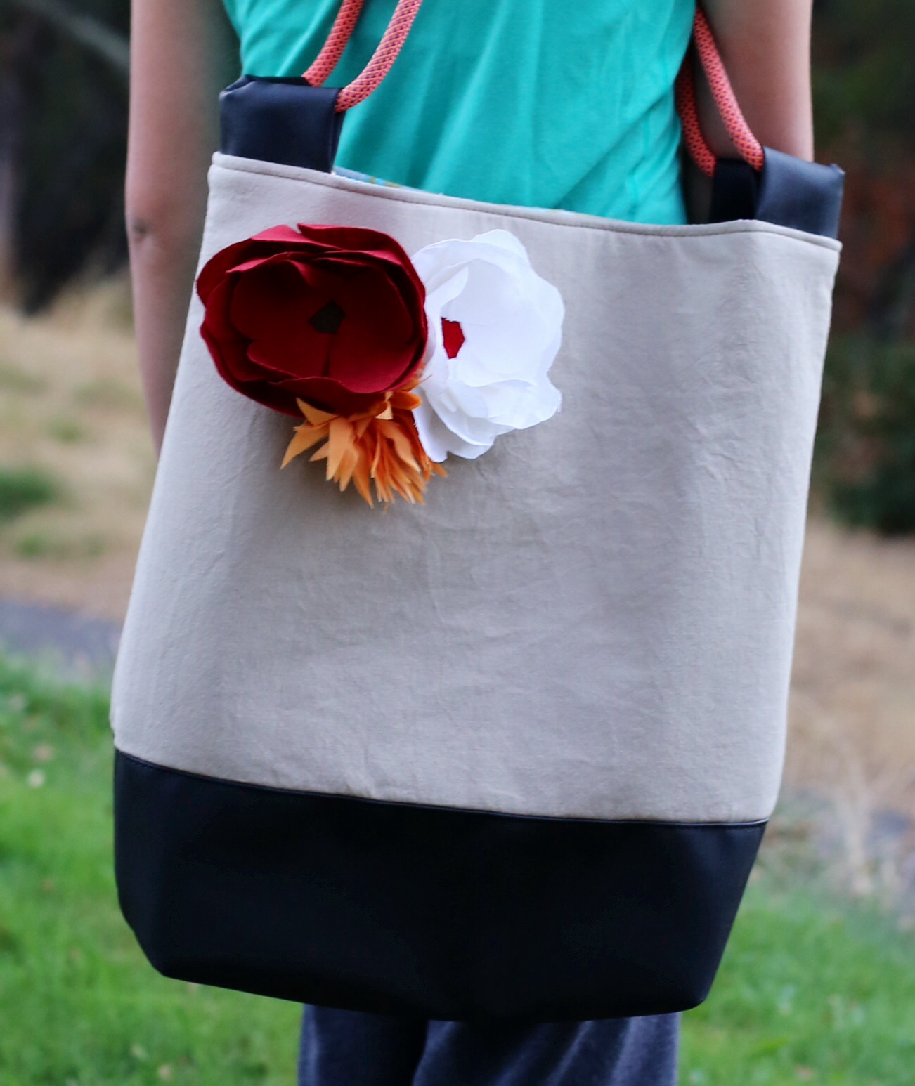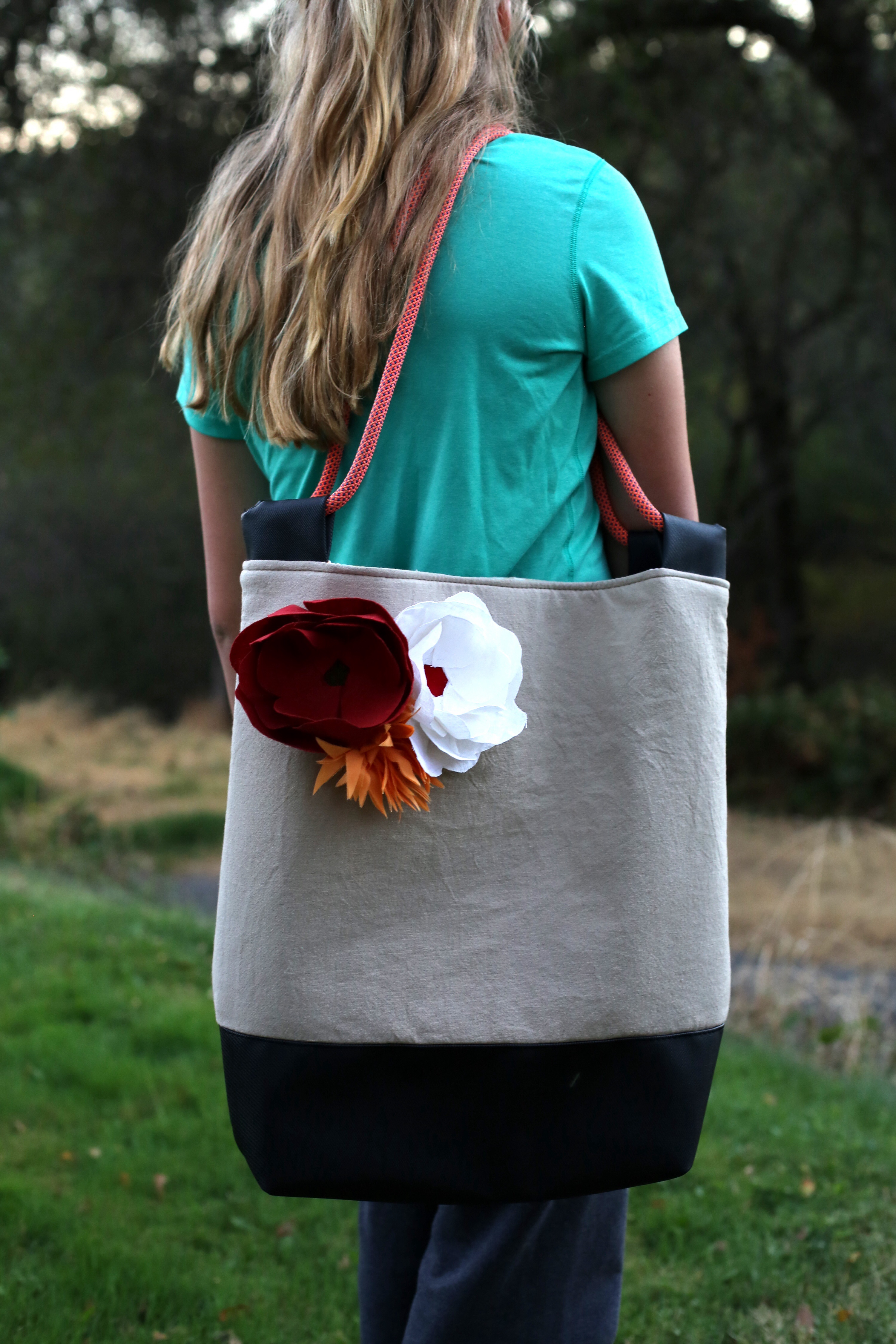 1 yard cotton (for the bag lining and the inside handles) cut into two rectangles (20″x18″) and two rectangles (20″x2″)