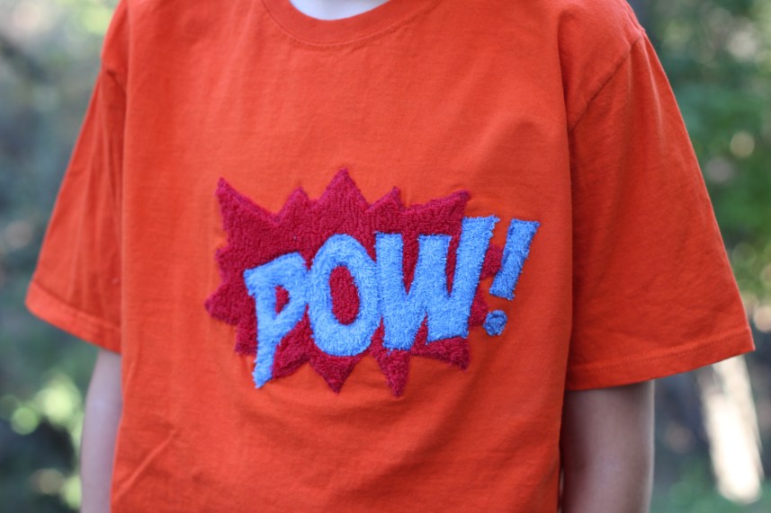 Over the last couple of weeks I have sewn up some of my favorite handmade gifts for worthy kiddos. This time around I leaned on Comics inspired graphics as subject matter but over the years I have made multiple variations of these towel shirts. They have taken on the forms of monsters. They have displayed beakers for a kid science day. I once made one of these sweatshirts for my kids’ swimming teacher with fish, bubbles and all. The possibilities are endless with your imagination as a guide. And do you want to know the best part: THEY ARE SUPER EASY AND INEXPENSIVE TO MAKE!