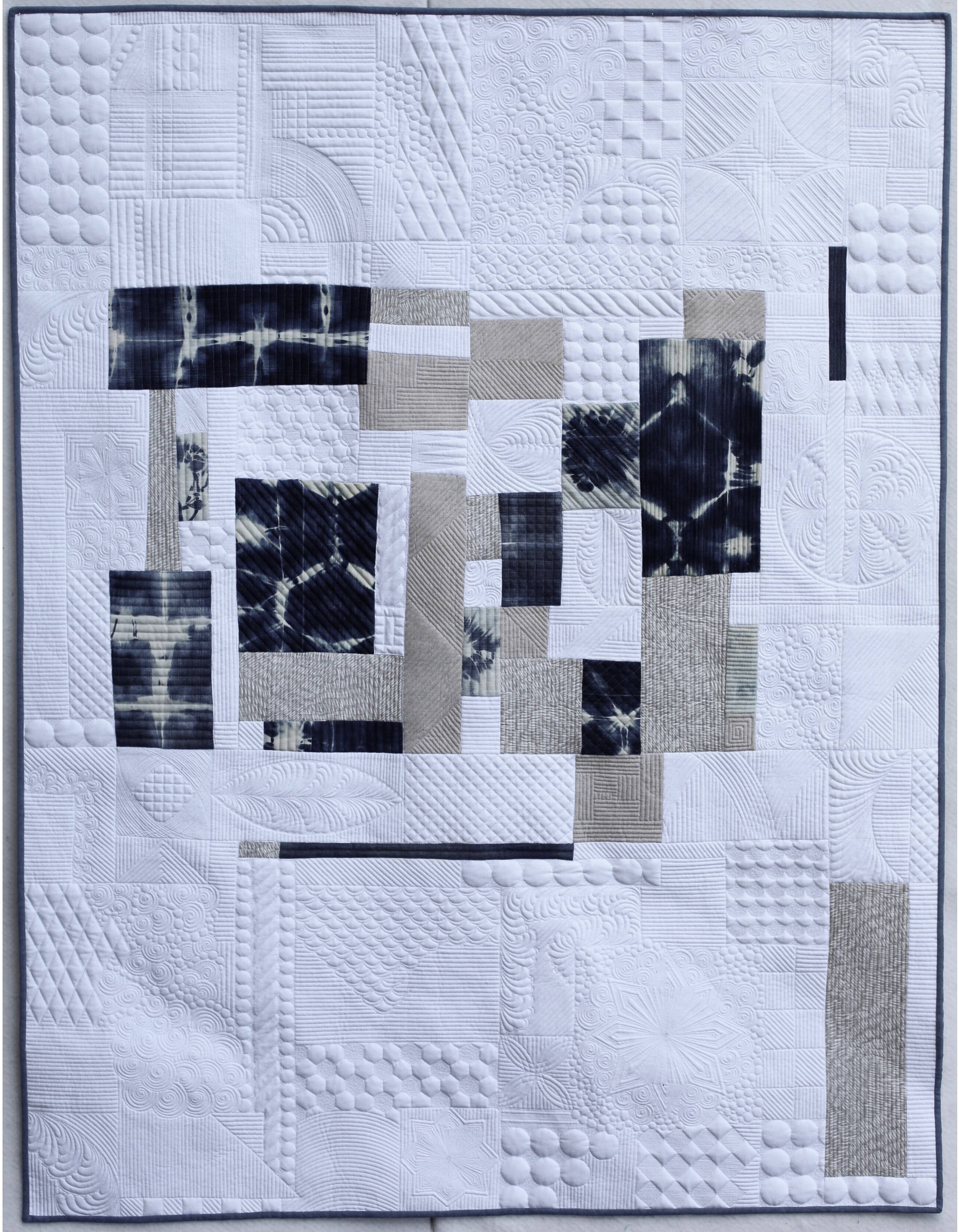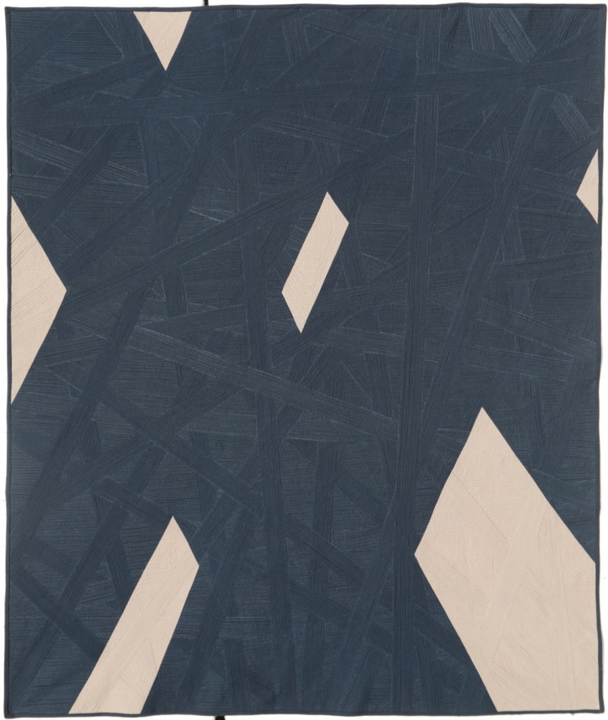“Breaking Tradition 1” Quilt; Botanically dyed Indigo and Logwood Waste on Linen; Hand Quilted