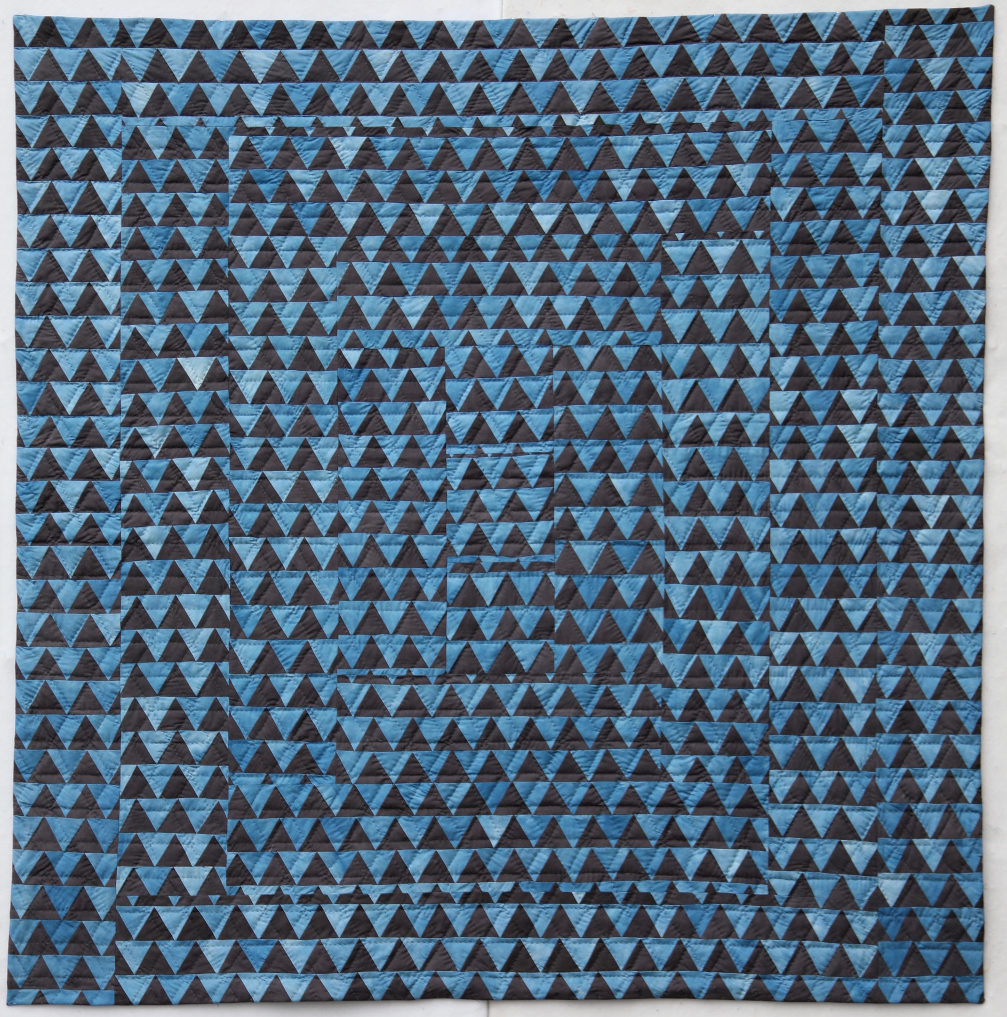 “Breaking Tradition 2” Quilt; Botanically dyed Indigo and Logwood+Iron on Quilting Cotton, Hand Quilted